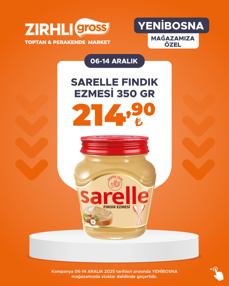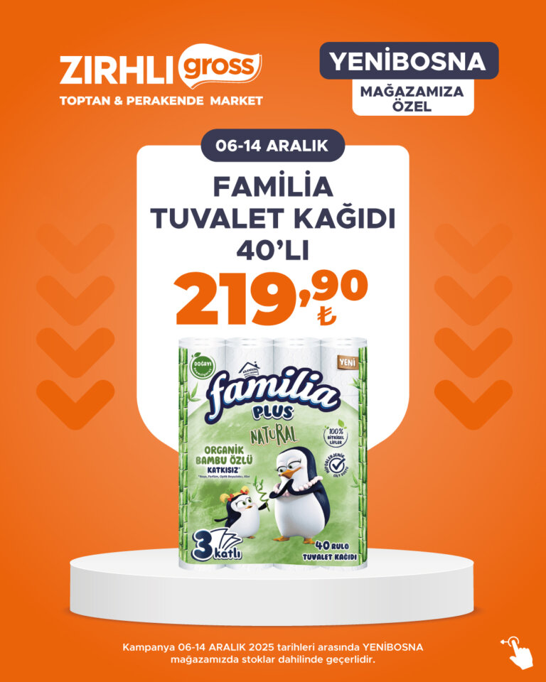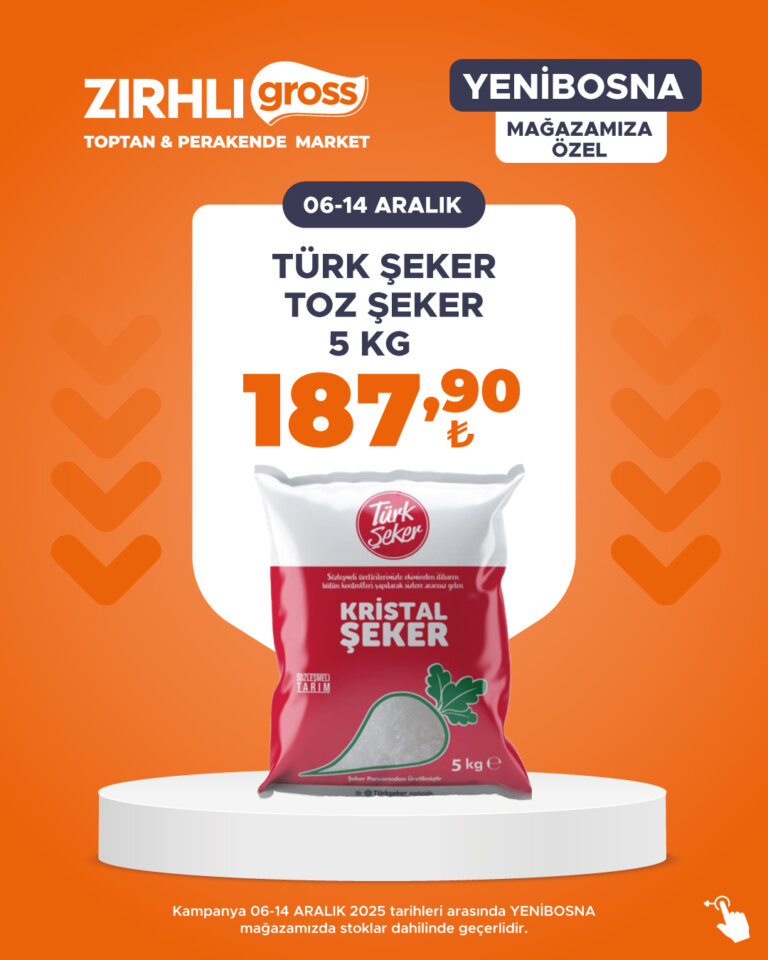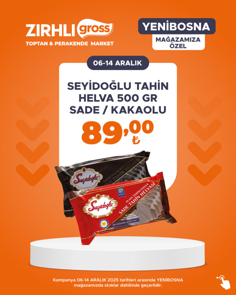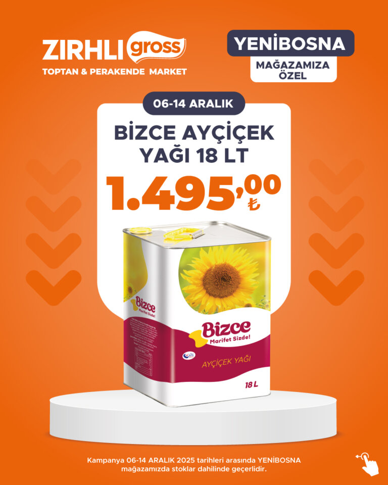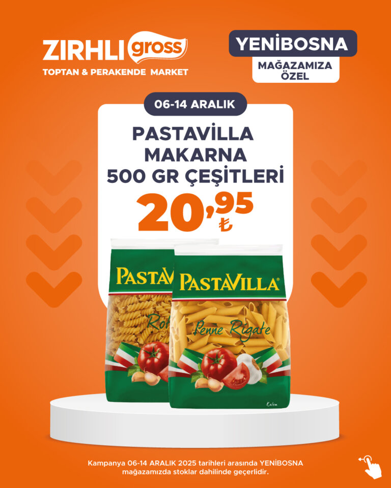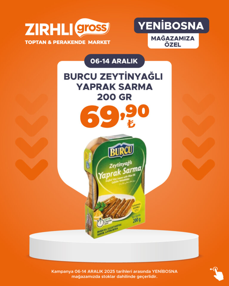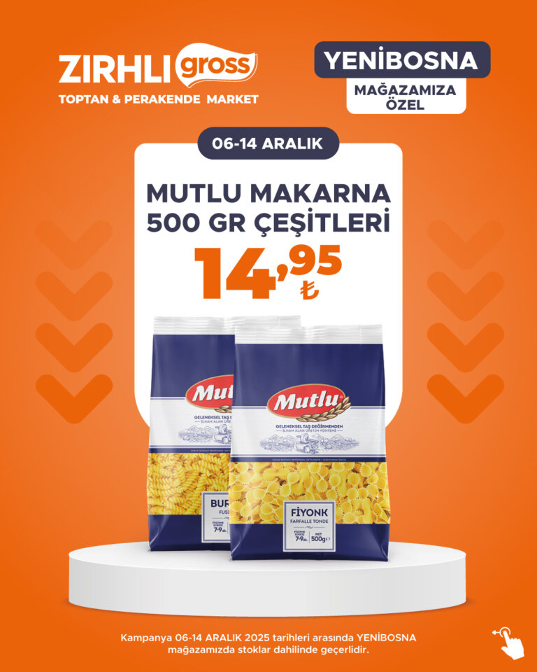 Kampanya 06-14 ARALIK 2025 tarihleri arasında YENİBOSNA mağazamızda stoklar dahilinde geçerlidir.