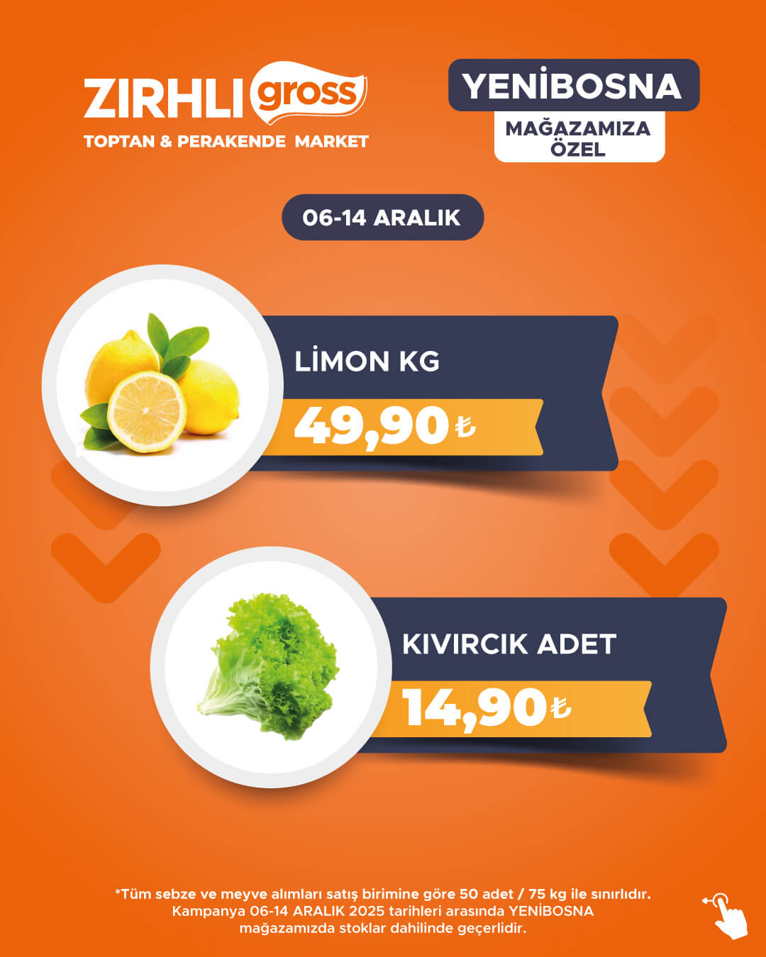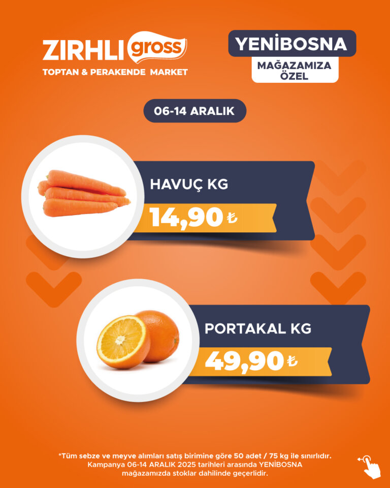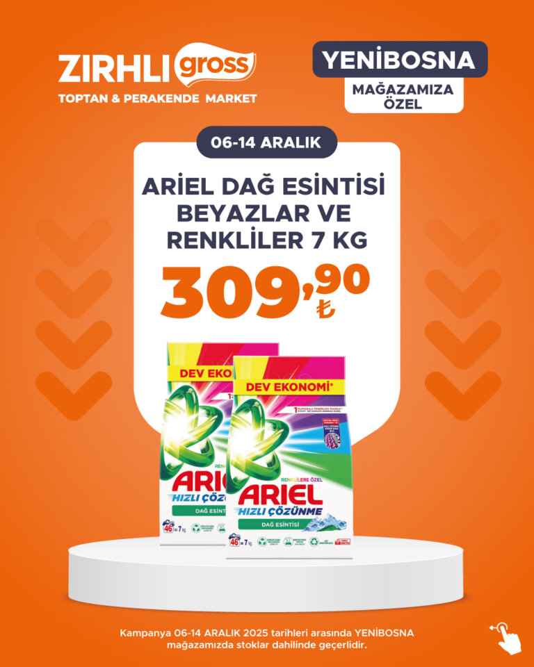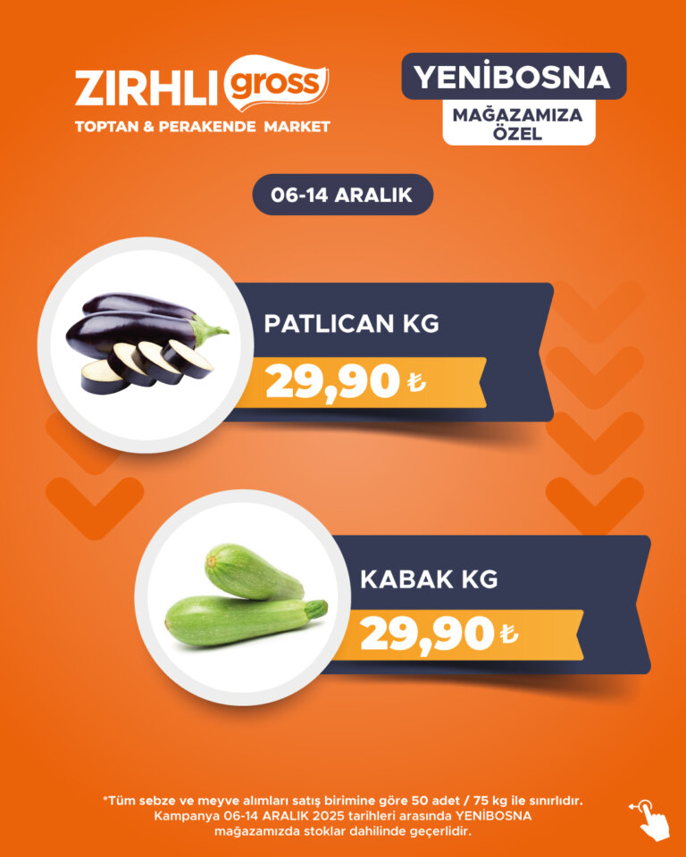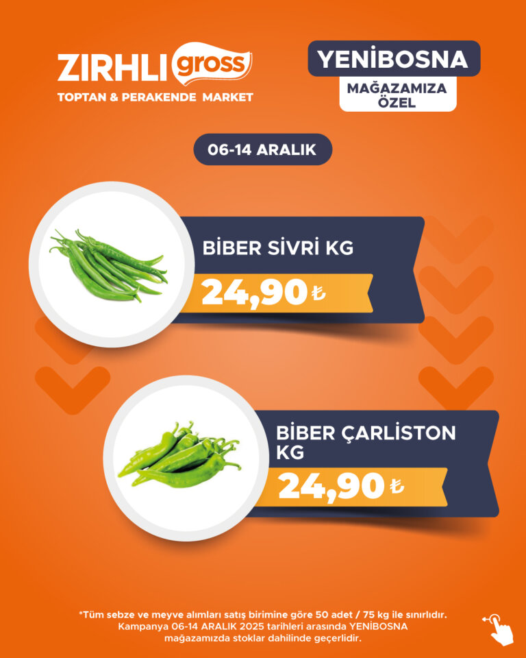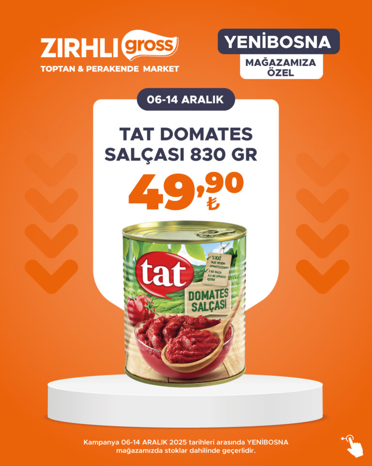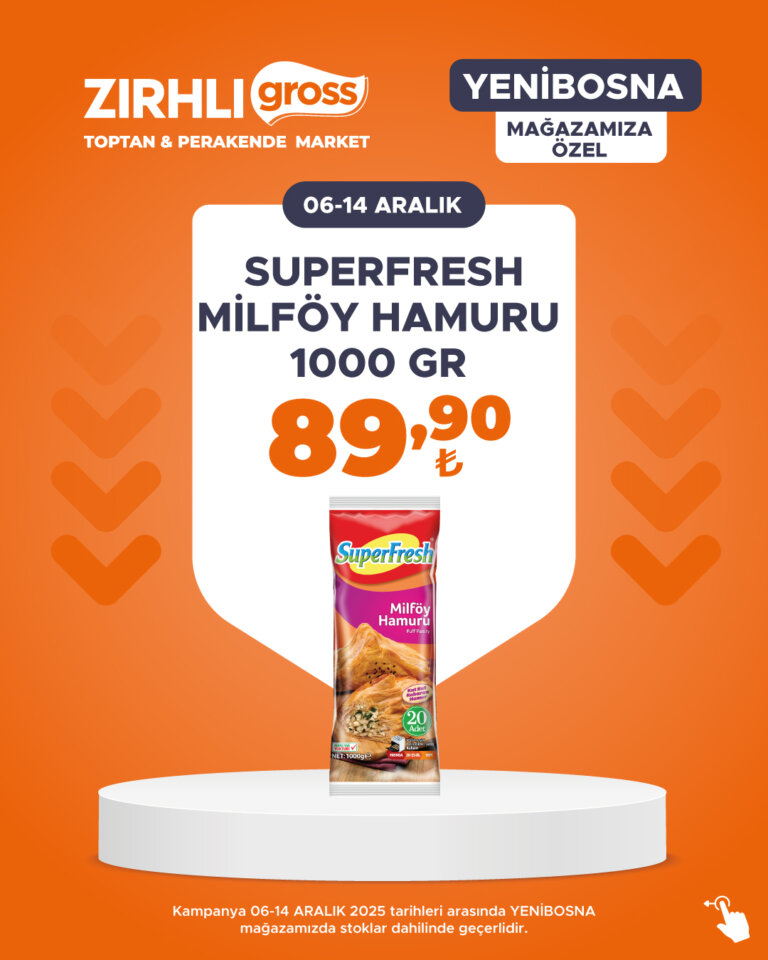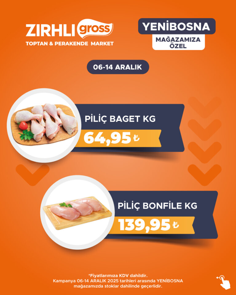 Kampanya 06-14 ARALIK 2025 tarihleri arasında YENİBOSNA mağazamızda stoklar dahilinde geçerlidir.
